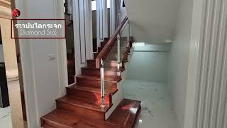 ราวบันไดกระจก Diamond กระจกต่ำ (ราวไม้มะค่า2x3นิ้ว)